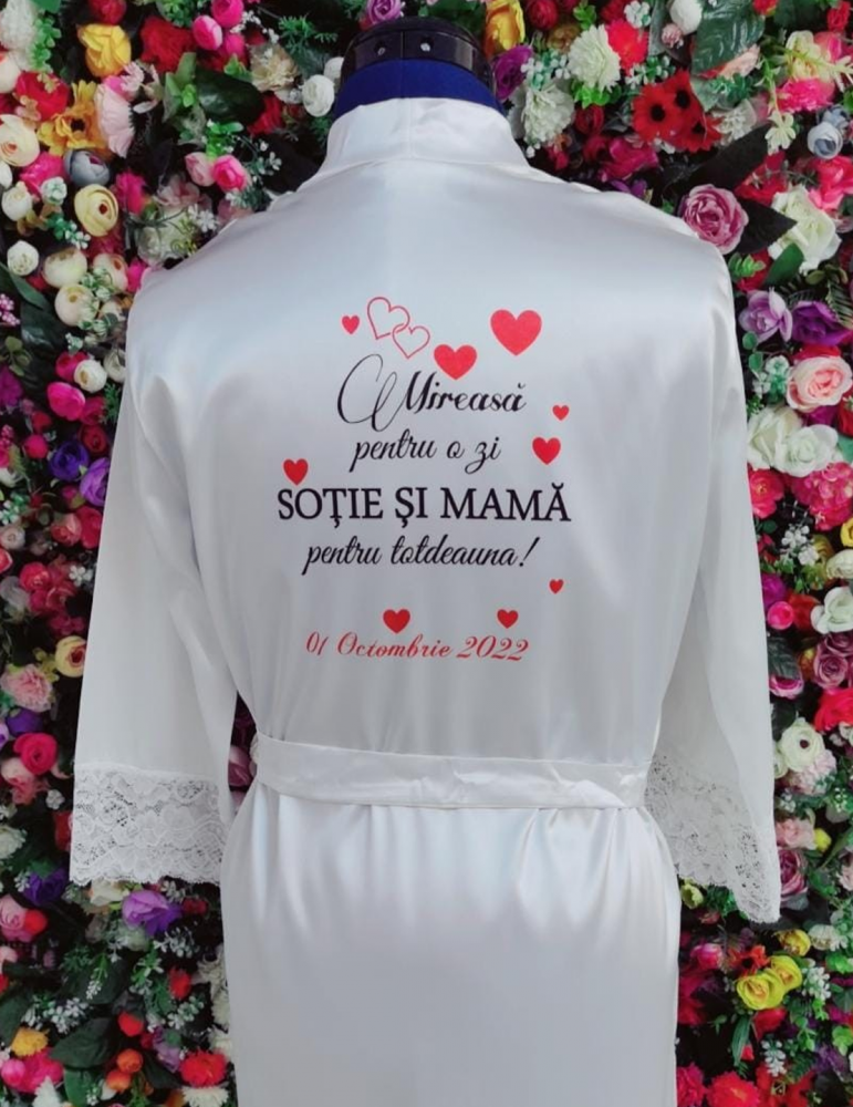 Halatul personalizat al miresei va fi, cu siguranta, o achizitie minunata pentru sesiunea foto ce va suprinde momentul pregatirii miresei.