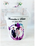 Pretul este pentru o singura galeata si include personalizarea cu numele mirilor, data evenimentului si citatul preferat.