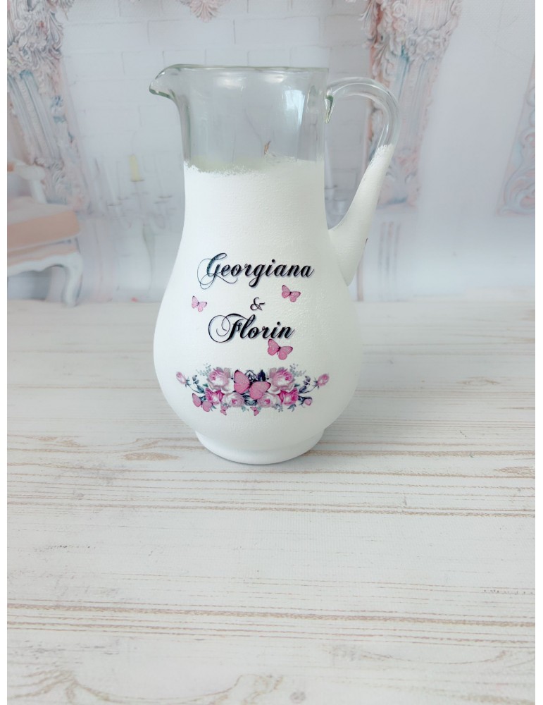 Pretul se refera la o singura carafa si include personalizarea cu numele mirilor si data evenimentului.