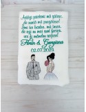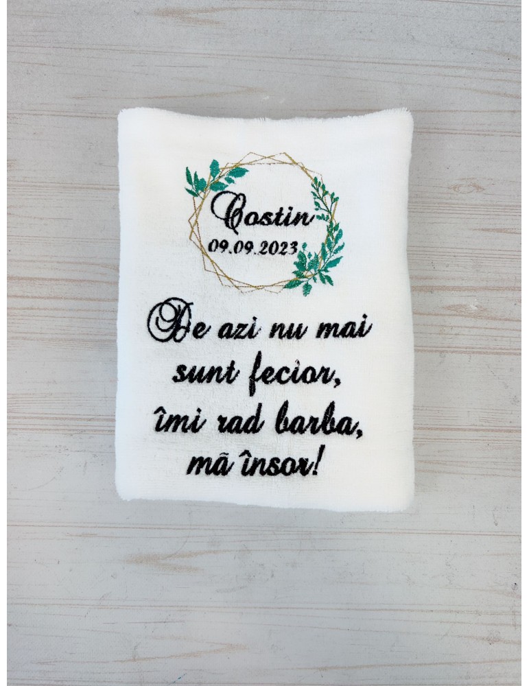 Pretul este pentru un singur prosop ginere si include personalizarea cu numele mirilor, data evenimentului si citatul preferat.