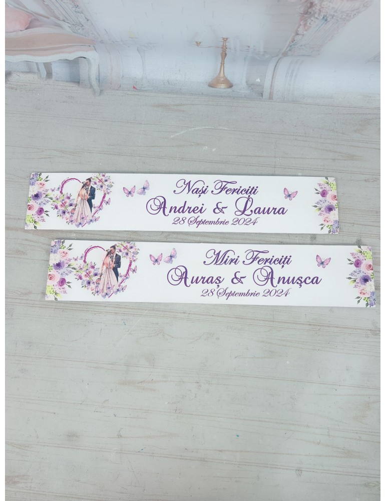 Pretul afisat se refera la un set de 2 placute auto si include personalizarea cu numele mirilor, data eveniment - Dimensiuni