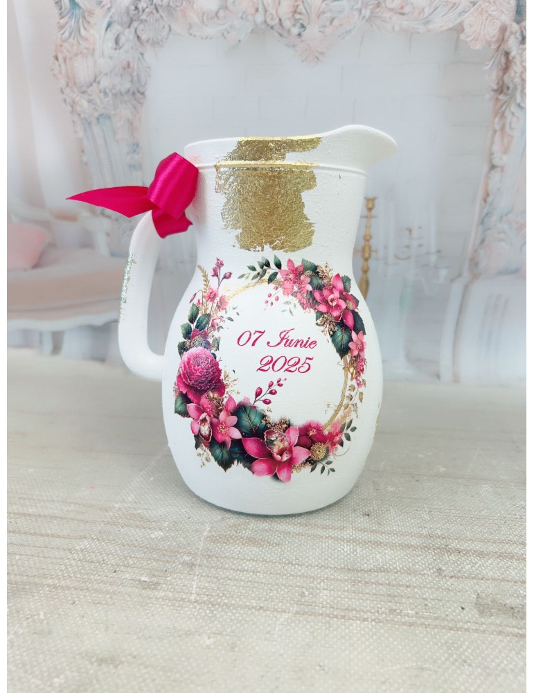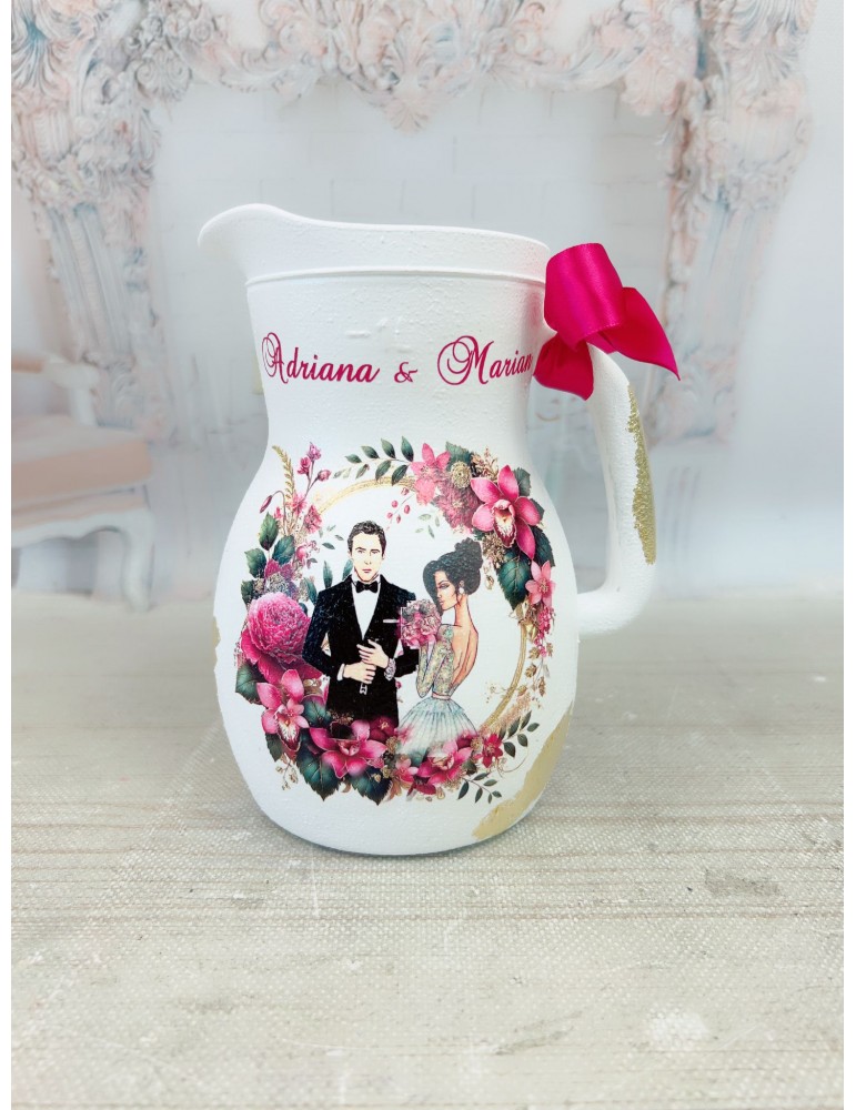 Carafa miresei personalizata cu nuante fucsia