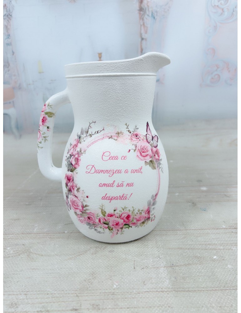 Pretul se refera la o singura carafa si include personalizarea cu numele mirilor si data evenimentului. - Volum carafa miresei