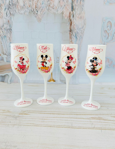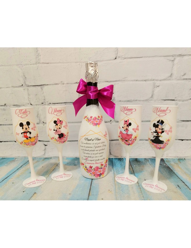 Pahare de botez personalizate pentru parinti si nasi cu Mickey si Minnie