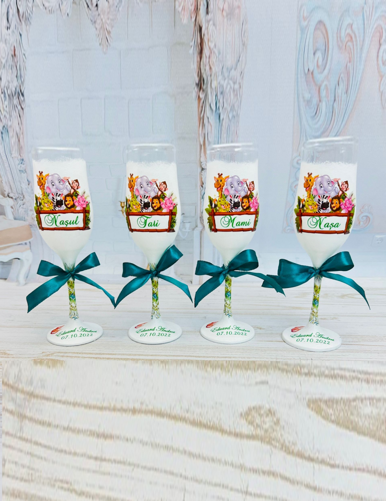 Pahare de botez personalizate pentru parinti si nasi cu safari