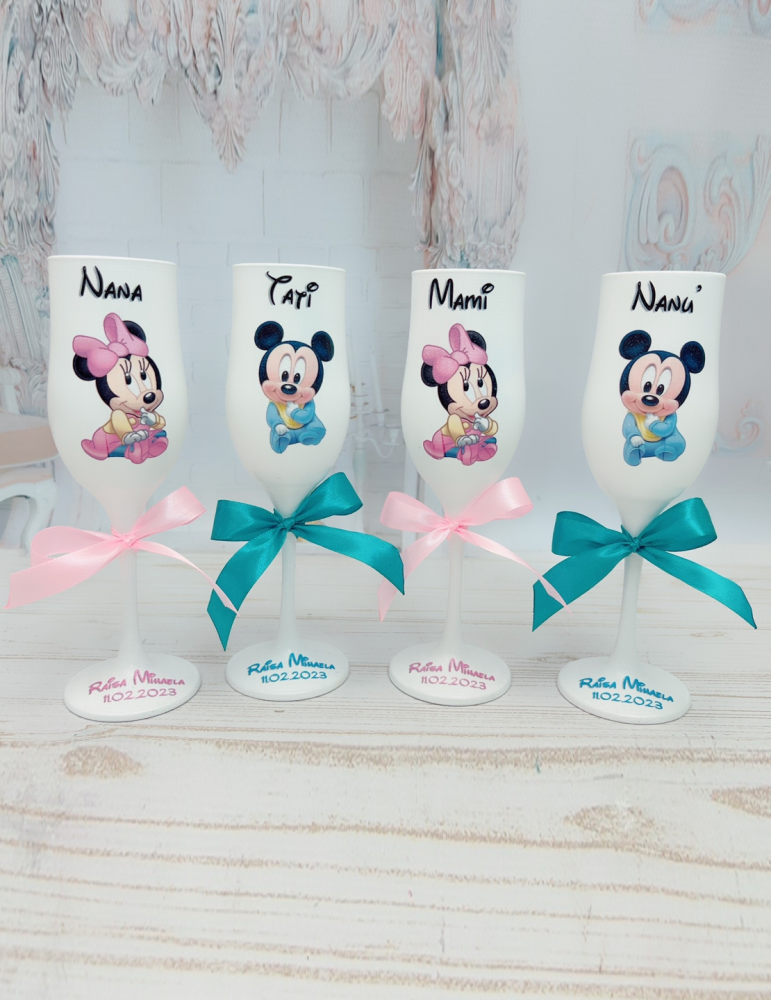Pahare de botez personalizate pentru parinti si nasi cu baby Minnie