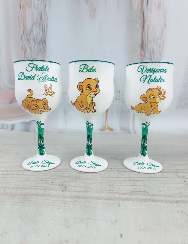 Pahare de botez personalizate pentru parinti si nasi cu Garda Felina nuante verde