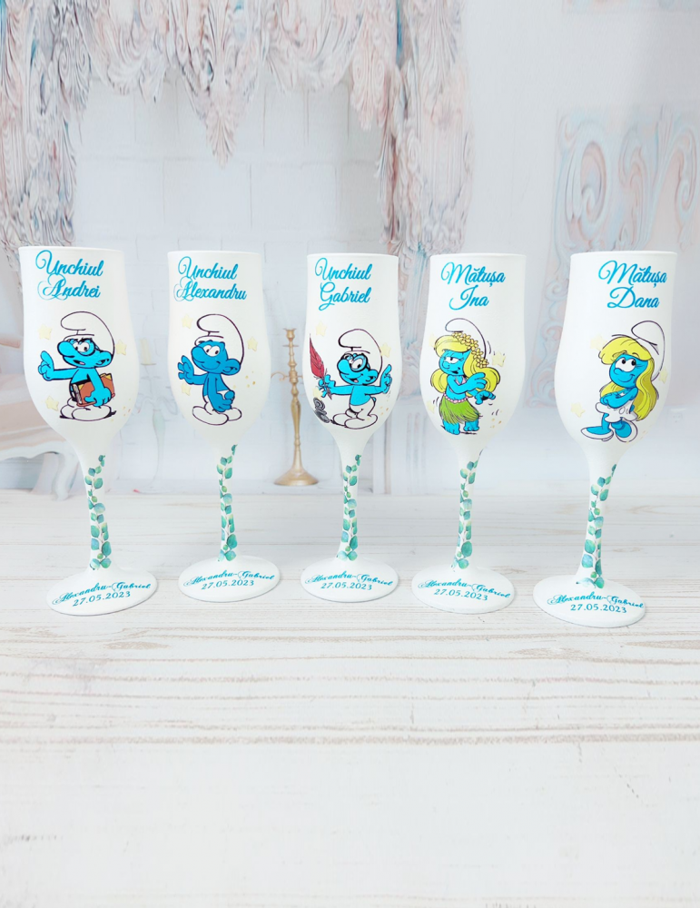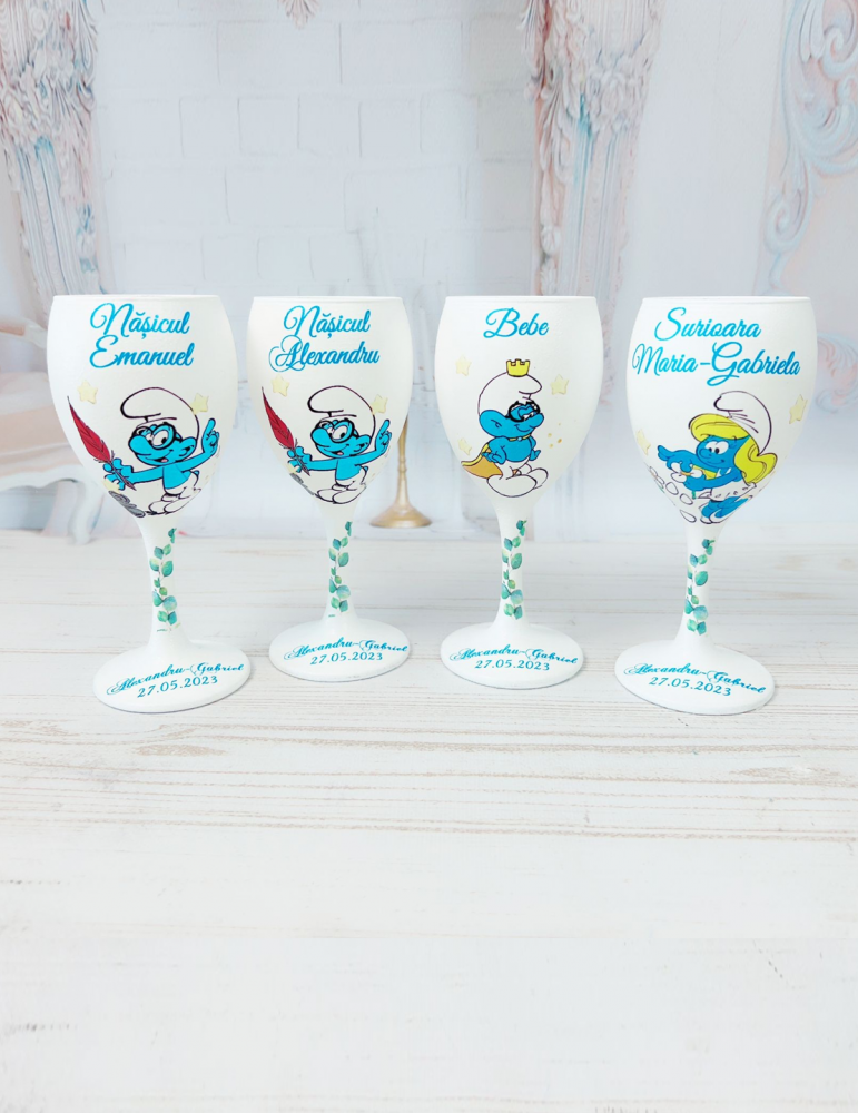 Alege pahare de botez unice, realizate manual prin tehnica decoupage, cu produse NON TOXICE, rezistente la spalare repetata. Fiecare pahar este personalizat tematic, perfect pentru parinti, nasi si copii, aducand un plus de rafinament evenimentului tau special.