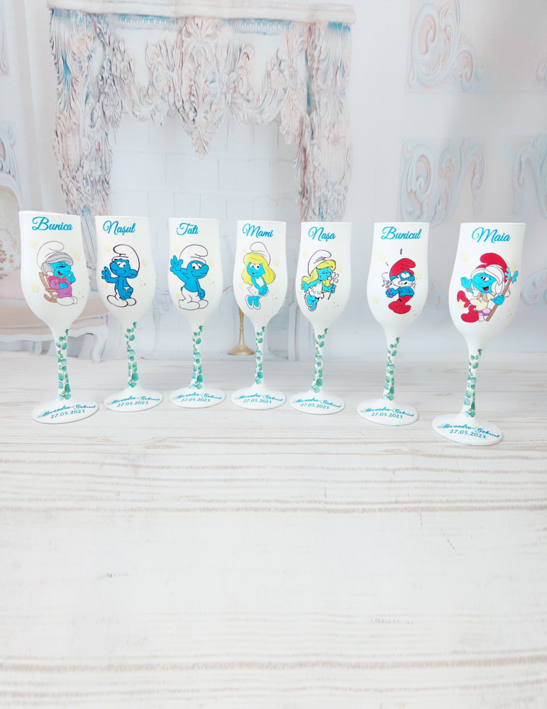 Pretul afisat se refera la un singur pahar si include personalizarea cu numele copilului, data eveniment