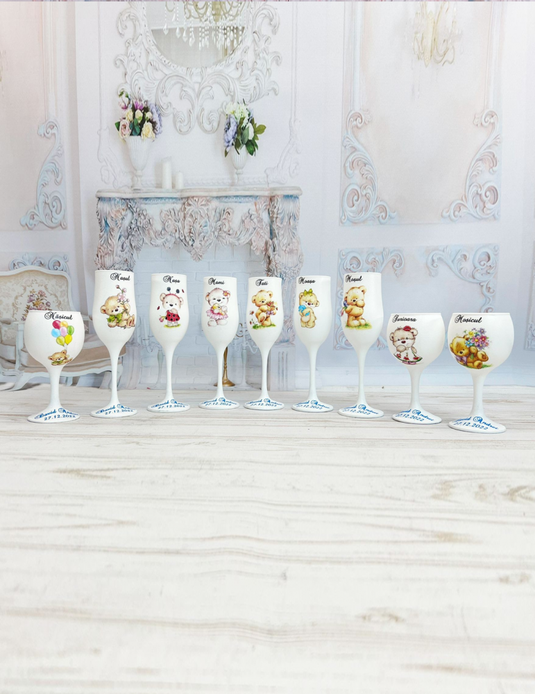 Pahare de botez personalizate pentru parinti si nasi cu ursuleti