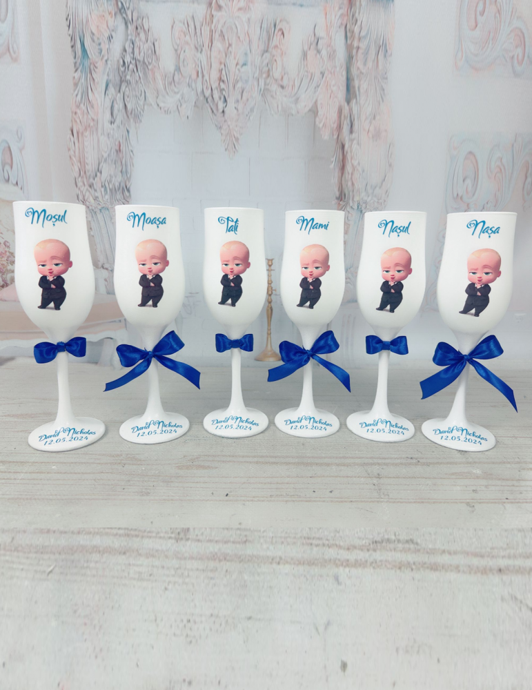 Pahare de botez personalizate pentru parinti si nasi cu Baby Boss