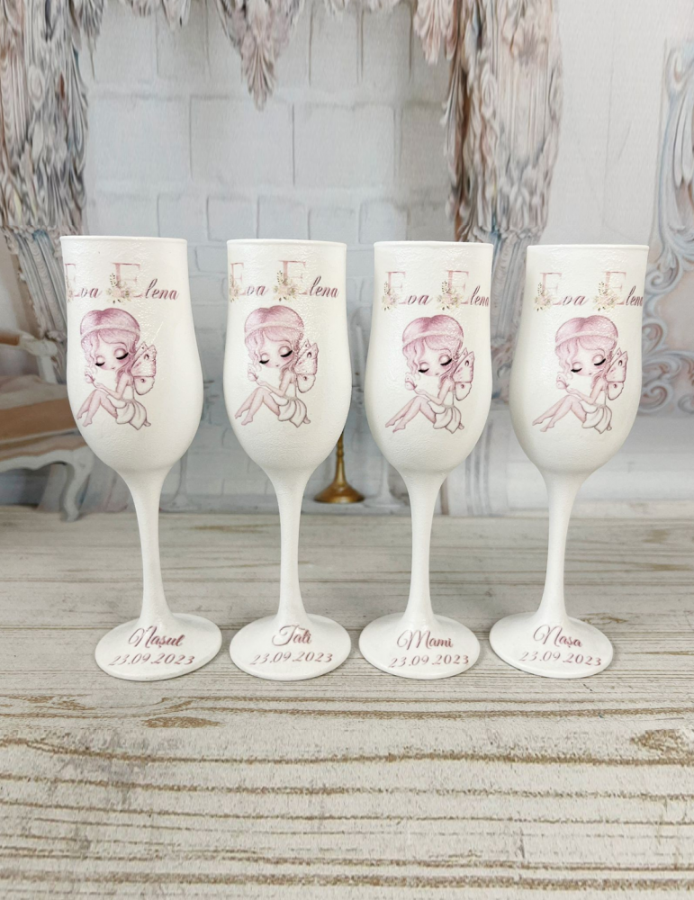 Transforma momentul special al botezului intr-o amintire de neuitat cu pahare de botez personalizate, realizate cu rabdare, atentie si pasiune! Fiecare pahar este lucrat manual prin tehnica decoupage, folosind produse NON TOXICE, rezistente la spalare repetata. Modelele unice sunt adaptate tematicii evenimentului tau, oferind o nota de rafinament si stil.