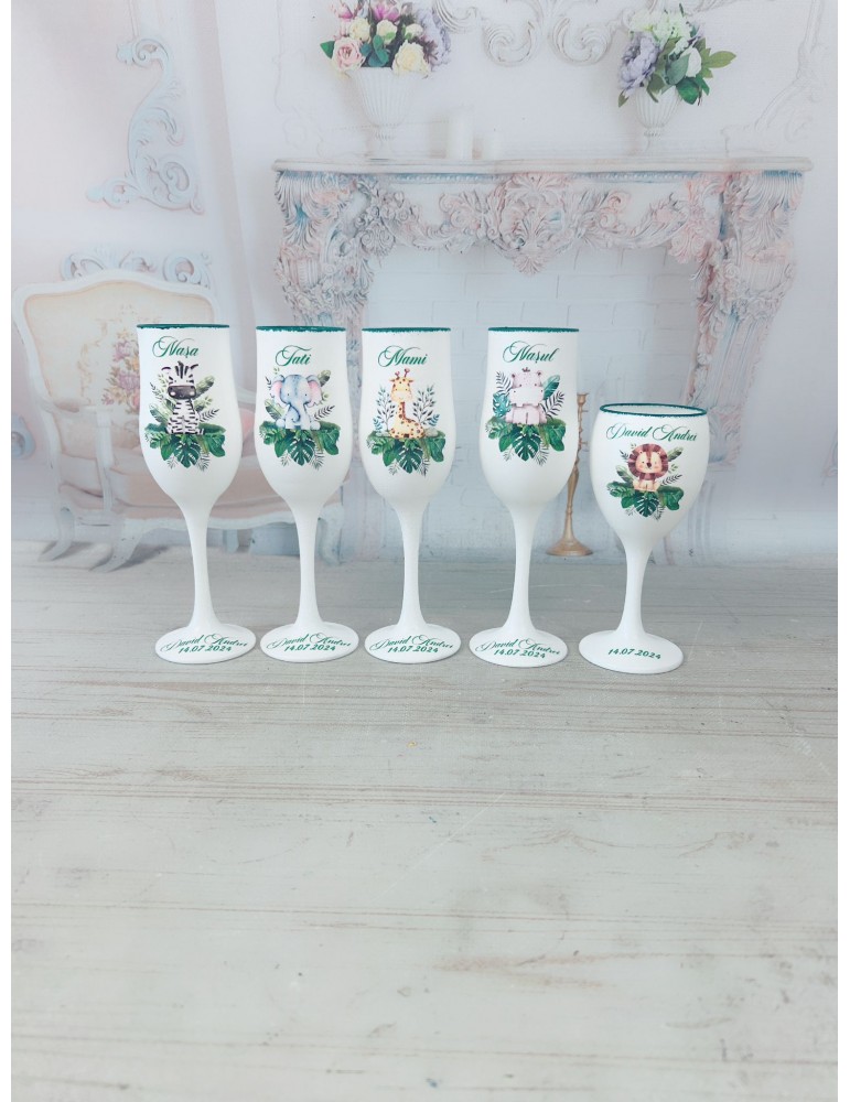 Pahare de botez personalizate pentru parinti si nasi cu safari