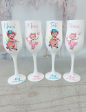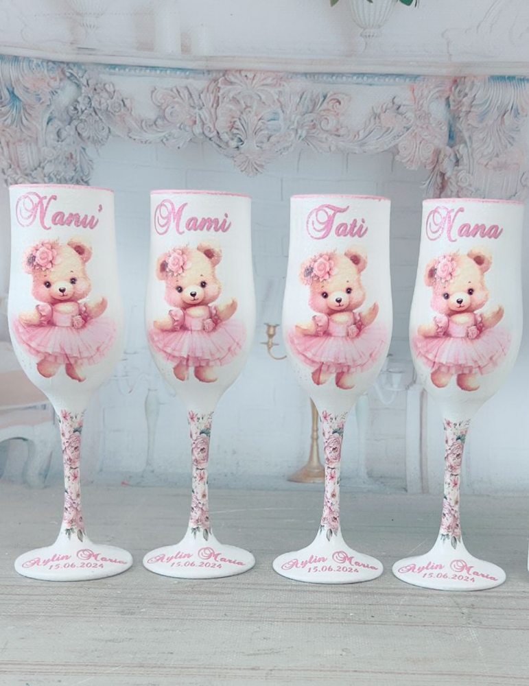 Alege pahare de botez unice, realizate manual prin tehnica decoupage, cu produse NON TOXICE, rezistente la spalare repetata. Fiecare pahar este personalizat tematic, perfect pentru parinti, nasi si copii, aducand un plus de rafinament evenimentului tau special.