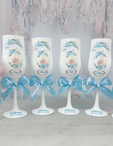Indiferent daca alegi pahare pentru parinti si nasi sau un set special pentru copii, produsele noastre imbina frumusetea lucrului manual cu materiale de inalta calitate, pentru a face din botez o sarbatoare deosebita.