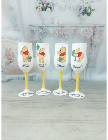Pahare de botez personalizate pentru parinti si nasi Winnie nuante galben