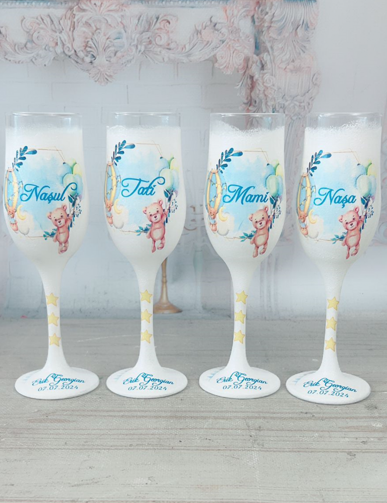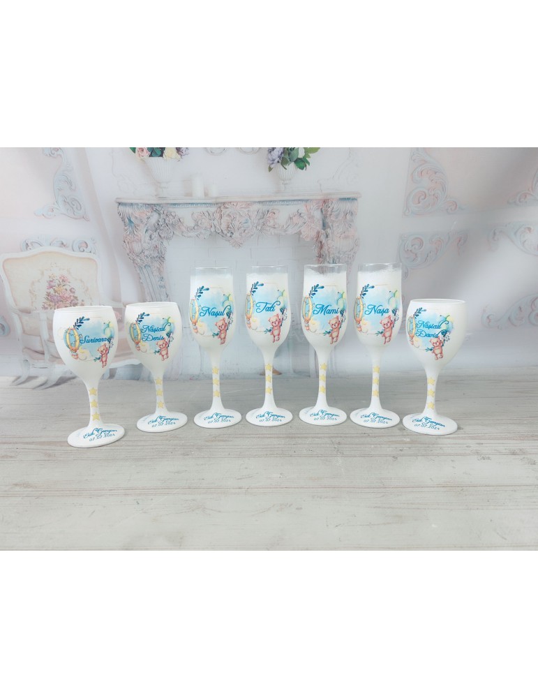 Pahare de botez personalizate pentru parinti si nasi cu ursulet