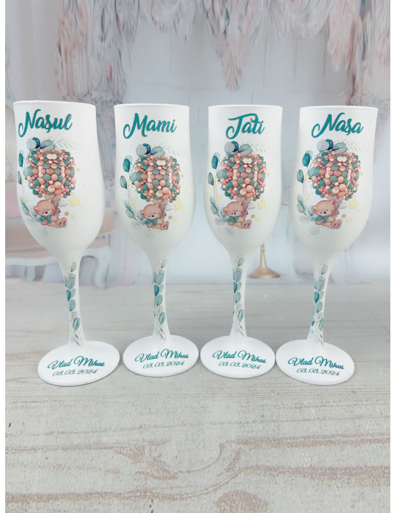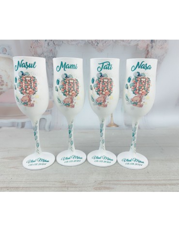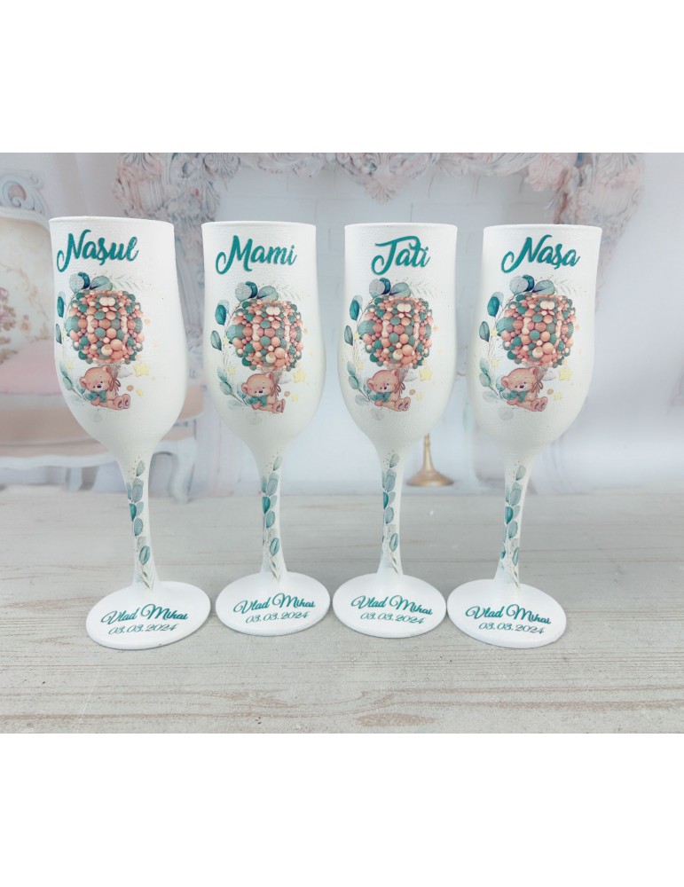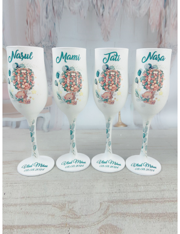 Pahare de botez personalizate pentru parinti si nasi cu ursulet