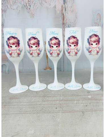 Alege pahare de botez unice, realizate manual prin tehnica decoupage, cu produse NON TOXICE, rezistente la spalare repetata. Fiecare pahar este personalizat tematic, perfect pentru parinti, nasi si copii, aducand un plus de rafinament evenimentului tau special.