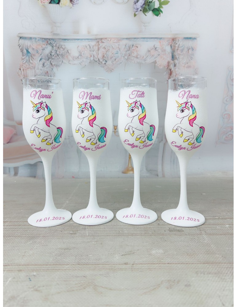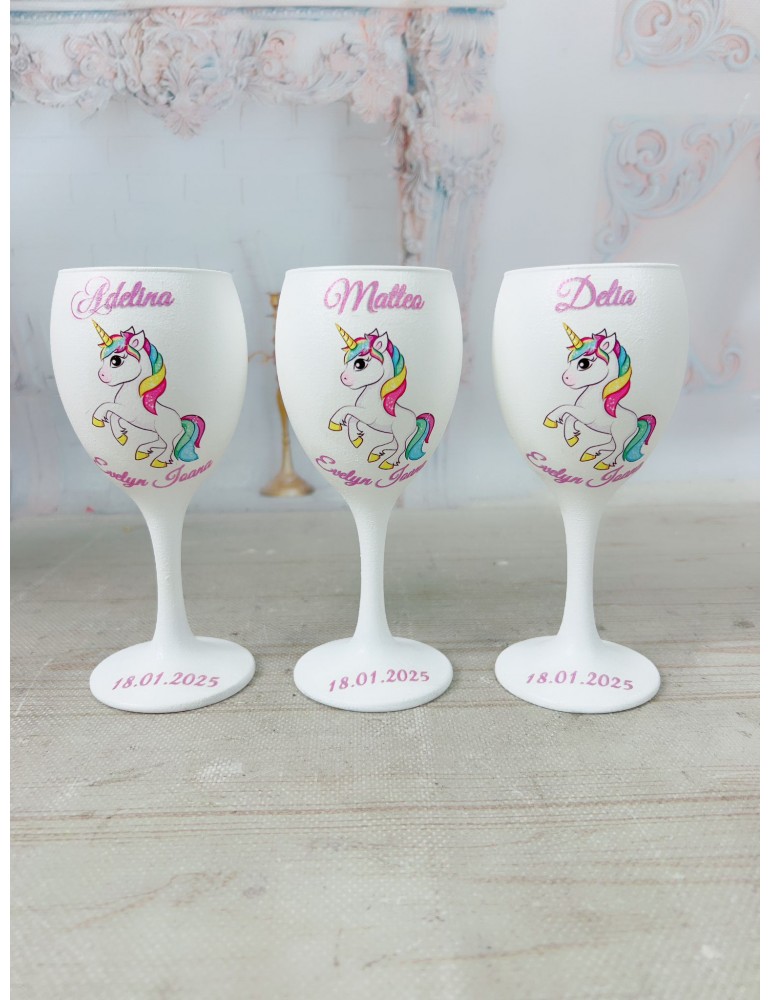 Pahare de botez personalizate pentru parinti si nasi cu unicorni