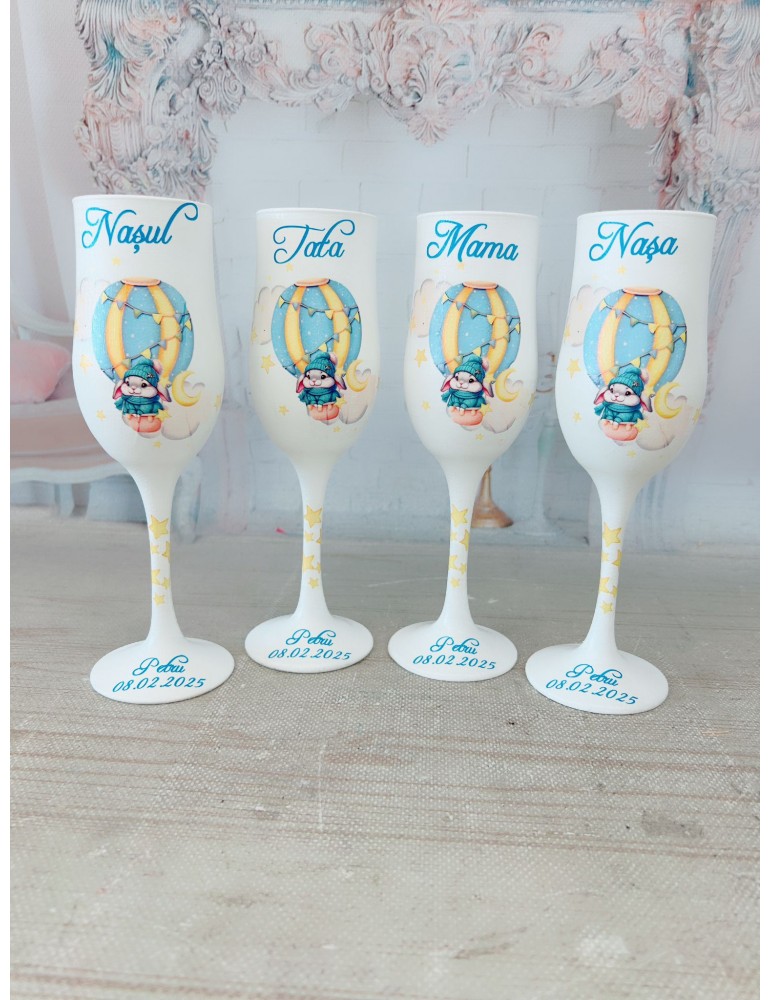 Pahare de botez personalizate pentru parinti si nasi cu iepuras