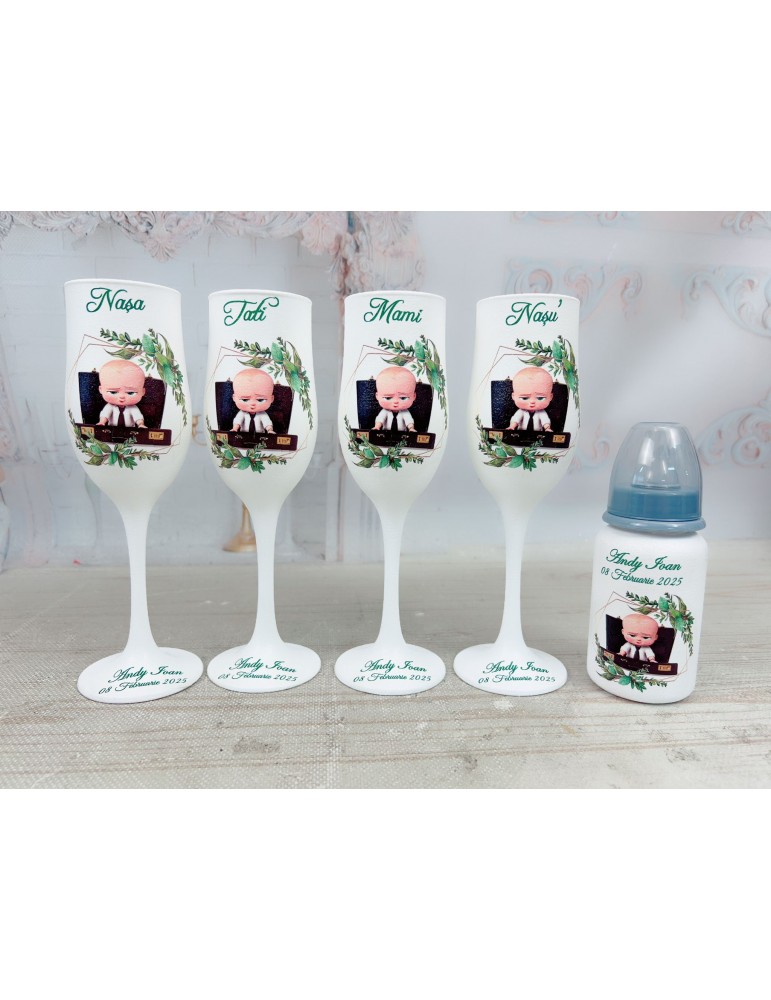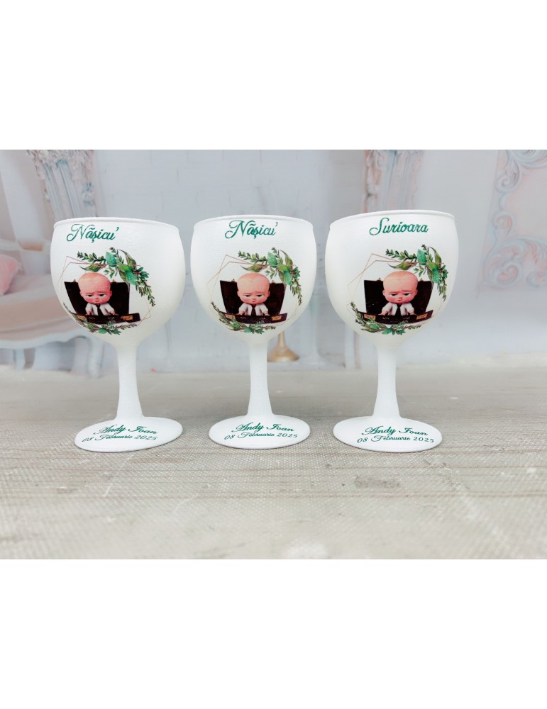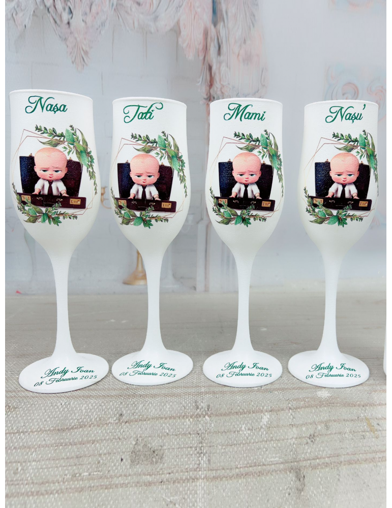 Pahare de botez personalizate pentru parinti si nasi cu baby boss