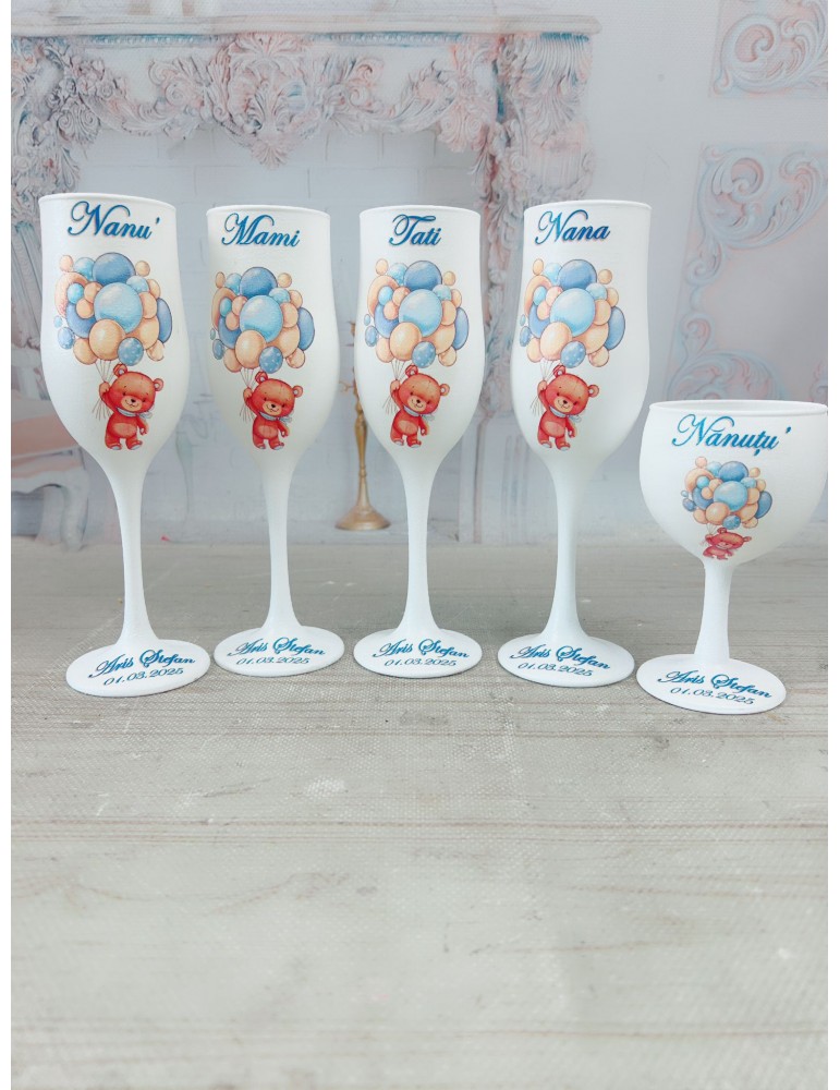 Pahare de botez personalizate pentru parinti si nasi cu ursulet