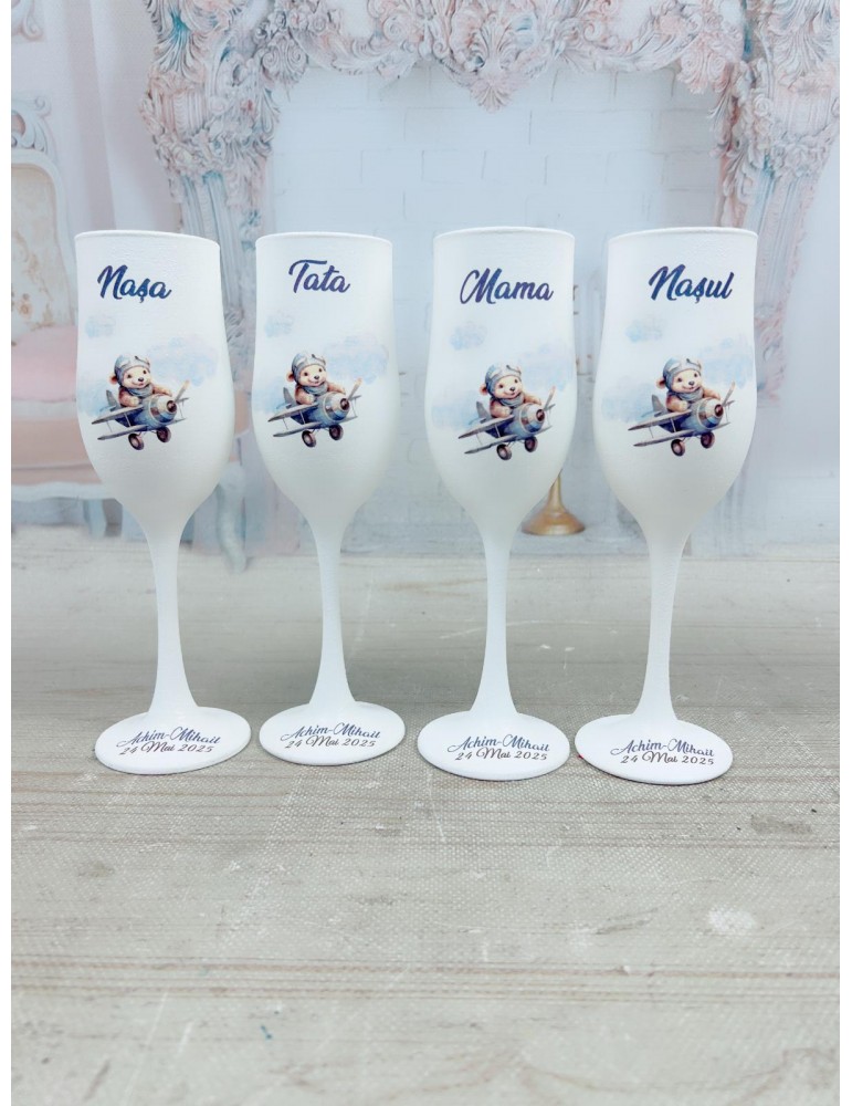 Pahare de botez personalizate pentru parinti si nasi cu ursulet