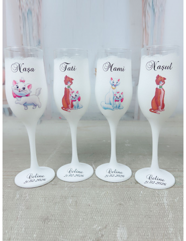 Pahare de botez personalizate pentru parinti si nasi cu pisica aristocrata