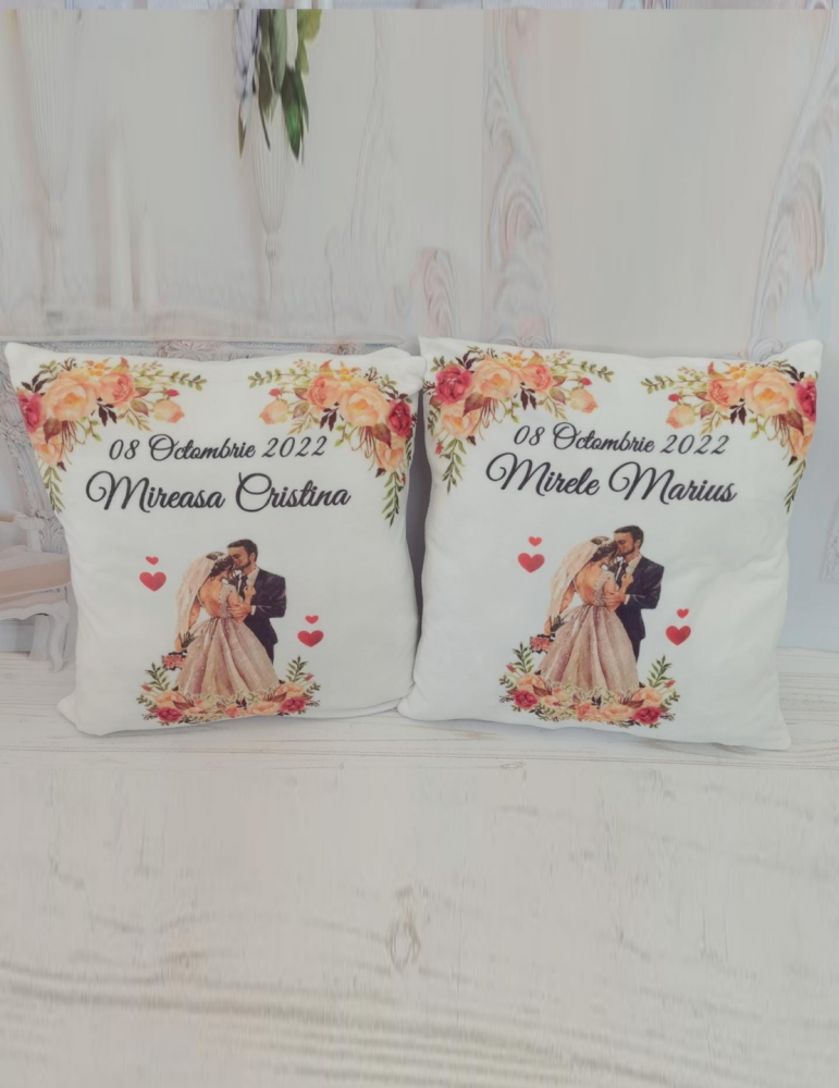 Imaginează-ți nunta perfectă, unde mireasa aruncă nu buchetul, ci o perna personalizata spre domnișoarele de onoare, spunând: "Cine prinde, să doarmă bine până la propria nuntă!" Aceste perne personalizate nunta nu sunt doar un decor superb pentru scaunele mirilor, dar și un mod amuzant de a păstra amintirea unei zile de neuitat. Este timpul să adormiți pe norișori de fericire, cu vise despre dans și tortul de nuntă!