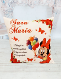 Descoperă o pernuță personalizată unică, perfectă pentru a sărbători prima aniversare a copilului tău! Această pernă specială poate fi personalizată cu personajul preferat al copilului, numele său, data evenimentului și un mesaj emoționant care va rămâne o amintire de neuitat. Creată cu materiale moi și de calitate, această pernă nu doar că oferă confort, dar devine și o piesă de decor adorabilă pentru camera copilului.