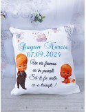 Descoperă o pernuță personalizată unică, perfectă pentru a sărbători prima aniversare a copilului tău! Această pernă specială poate fi personalizată cu personajul preferat al copilului, numele său, data evenimentului și un mesaj emoționant care va rămâne o amintire de neuitat. Creată cu materiale moi și de calitate, această pernă nu doar că oferă confort, dar devine și o piesă de decor adorabilă pentru camera copilului.
