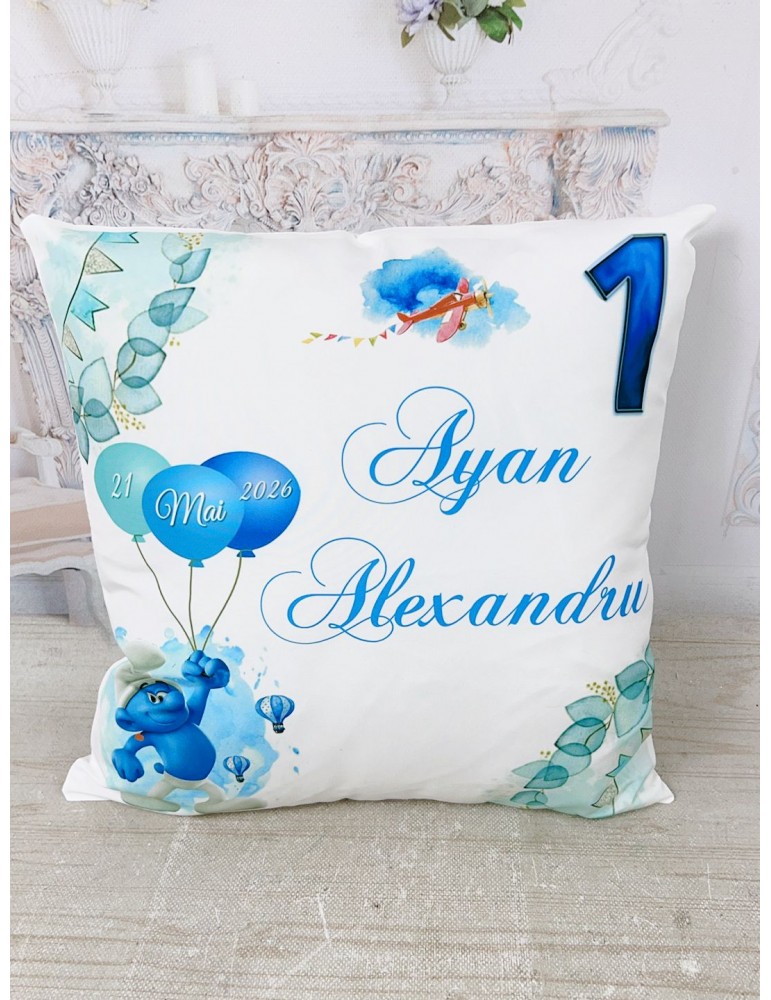 Descoperă o pernuță personalizată unică, perfectă pentru a sărbători prima aniversare a copilului tău! Această pernă specială poate fi personalizată cu personajul preferat al copilului, numele său, data evenimentului și un mesaj emoționant care va rămâne o amintire de neuitat. Creată cu materiale moi și de calitate, această pernă nu doar că oferă confort, dar devine și o piesă de decor adorabilă pentru camera copilului.
