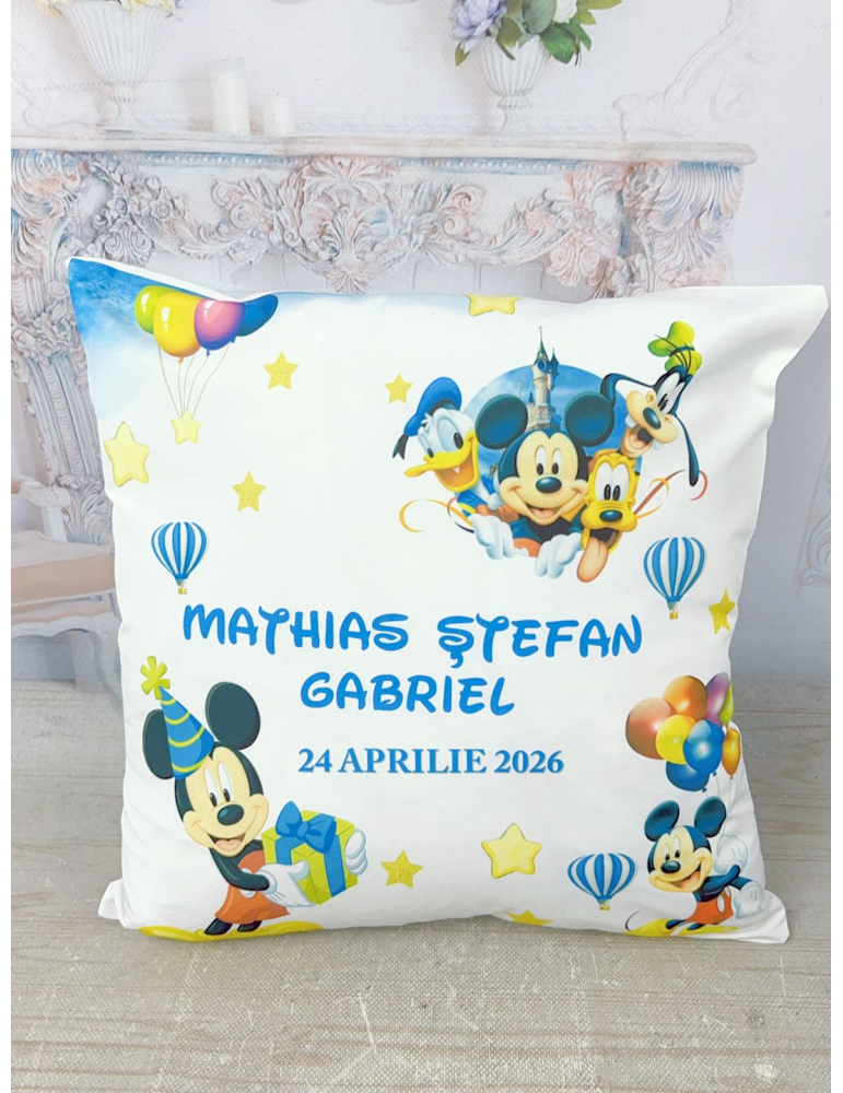 Descoperă o pernuță personalizată unică, perfectă pentru a sărbători prima aniversare a copilului tău! Această pernă specială poate fi personalizată cu personajul preferat al copilului, numele său, data evenimentului și un mesaj emoționant care va rămâne o amintire de neuitat. Creată cu materiale moi și de calitate, această pernă nu doar că oferă confort, dar devine și o piesă de decor adorabilă pentru camera copilului.
