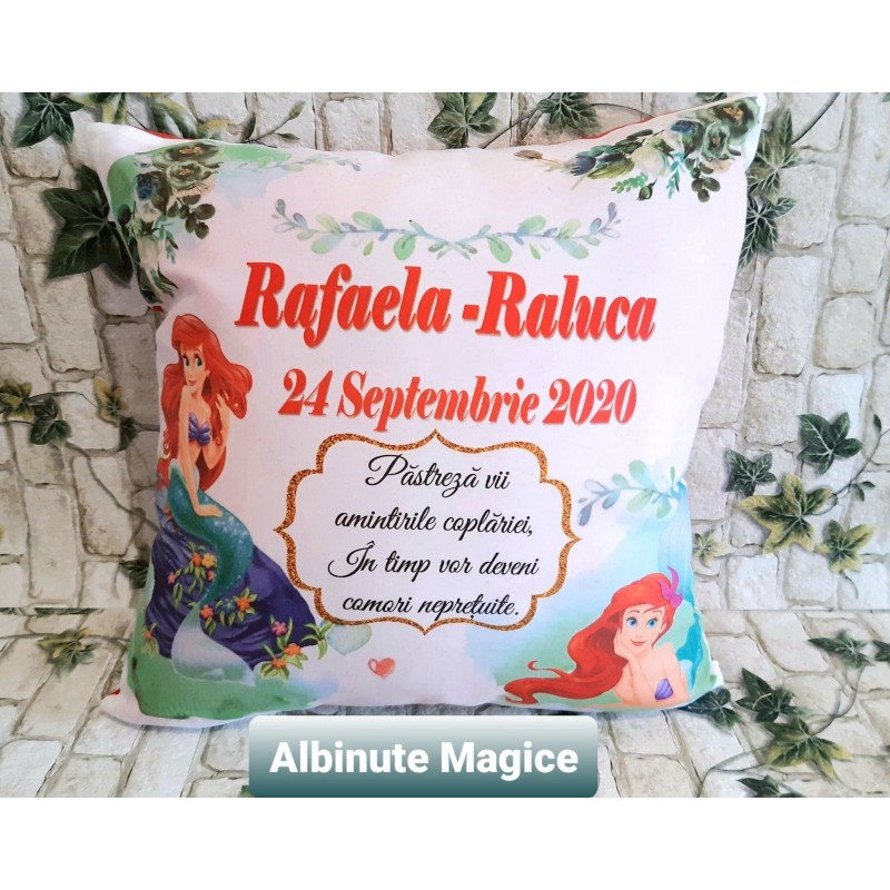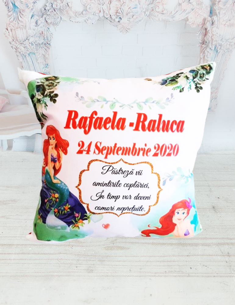 Pretul afisat se refera la o singura perna si include personalizarea cu nume copil, data eveniment, mesaj preferat. - Dimensiune perna