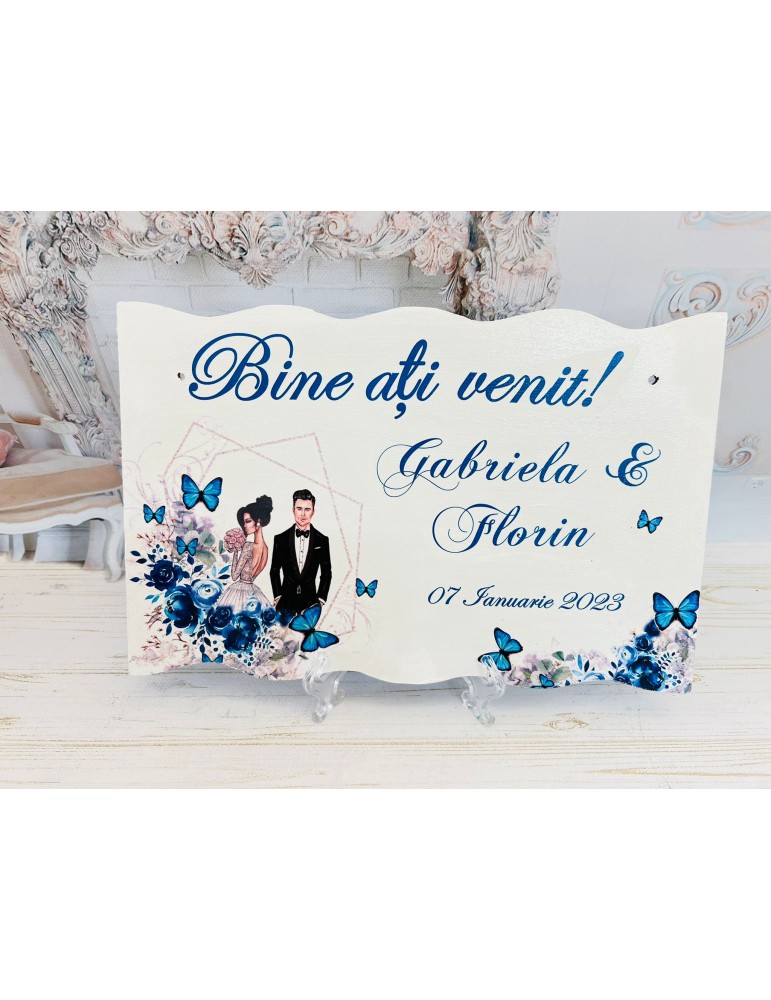 Pretul se refera la o singura placuta bine ati venit si include personalizarea cu numele mirilor si data evenimentului - Dimensiune placuta bine ati venit