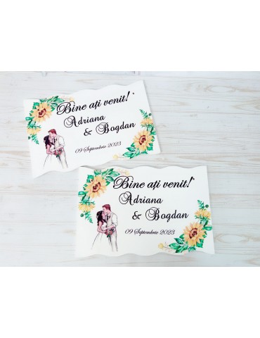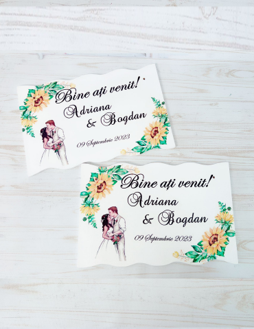Imaginează-ți o nuntă unde primul lucru pe care îl văd invitații nu e doar o simplă decorare, ci o placută bine ati venit care să-i întâmpine cu umor și căldură. Pentru mireasa cu simțul umorului, aceste placute personalizate pot spune lucruri precum "Ați nimerit bine, aici e petrecerea!" sau "Pregătiți-vă de dans, mâncare și o mică ședință de plâns de fericire!" Placute personalizate cu nume îi vor face pe fiecare să se simtă parte din ceva cu adevărat special.