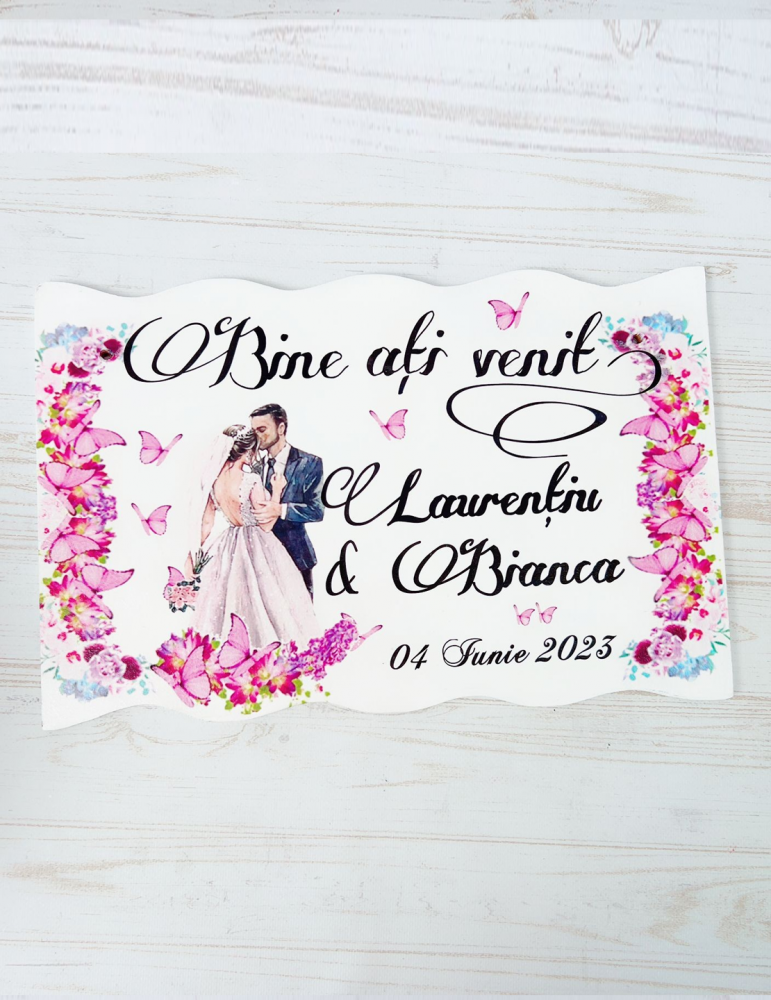 Imaginează-ți o nuntă unde primul lucru pe care îl văd invitații nu e doar o simplă decorare, ci o placută bine ati venit care să-i întâmpine cu umor și căldură. Pentru mireasa cu simțul umorului, aceste placute personalizate pot spune lucruri precum "Ați nimerit bine, aici e petrecerea!" sau "Pregătiți-vă de dans, mâncare și o mică ședință de plâns de fericire!" Placute personalizate cu nume îi vor face pe fiecare să se simtă parte din ceva cu adevărat special.