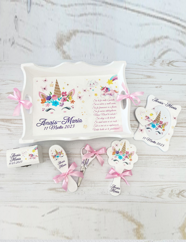Set mot - turta personalizat cu tematica unicorn si stelute