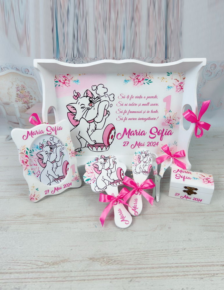 Transformă prima aniversare a fetiței tale într-un eveniment elegant cu un set de mot personalizat cu „Pisicuța aristocrată”. Acest set de mot adorabil și rafinat, inspirat de lumea pisicuțelor elegante, este perfect pentru a adăuga o notă de stil și farmec sărbătorii. Fiecare detaliu este realizat cu grijă, oferind un design unic care va impresiona invitații. Alege acest set de turta personalizat pentru a marca un moment special în viața micuței tale!
