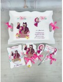 • Seturile de mot/turta personalizate sunt lucrate prin tehnica decoupage si sunt lacuite in 3 straturi pentru a asigura rezistenta in timp. Produsele utilizate pe parcursul procesului de personalizare sunt profesionale, NON-TOXICE si asigura rezistenta la spalare. Principalul nostru furnizor fiind MAXI DECOR.