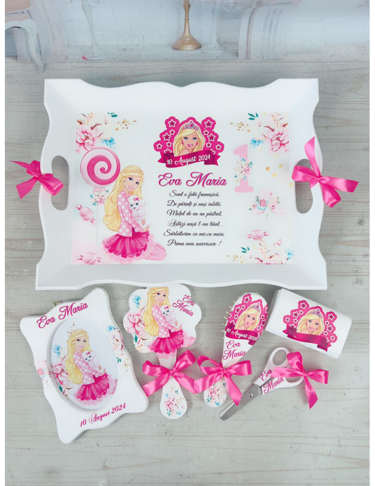 Set mot fetita cu tematica Barbie - set turta Barbie