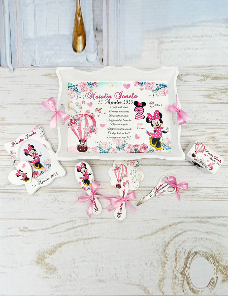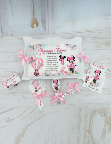 Set mot - turta personalizat cu tematica Minnie si balonul cu aer cald