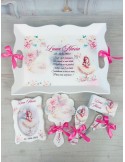 - 6 elemente: tavita, perie, oglinda, rama foto, cutiuta suvite, forfecuta
