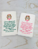 Alege un cadou deosebit pentru nașii de botez cu aceste prosoape personalizate prin broderie, ambalate într-o cutie cadou elegantă din carton!