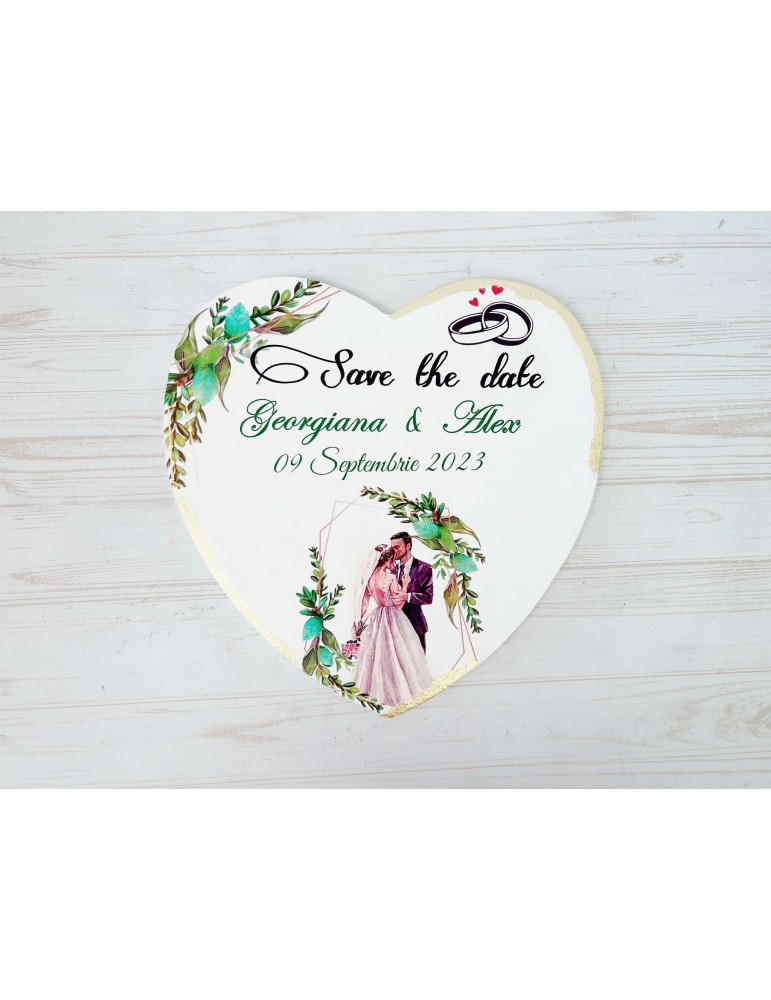 Pretul afisat se refera la un singur produs "Save the Date" pentru nunta personalizat cu numele mirilor si data evenimentului.