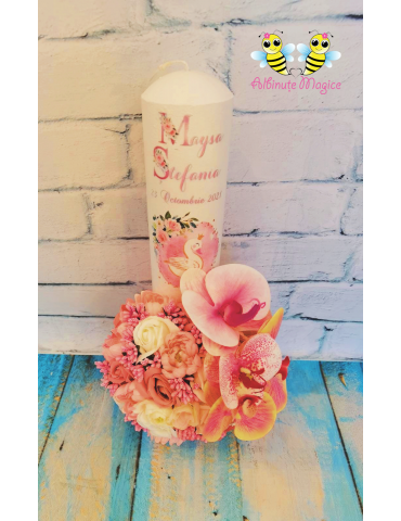 Materialele utilizate pentru decorarea lumanarilor pot varia usor in functie de stocul disponibil la furnizor (flori, benzi, accesorii).