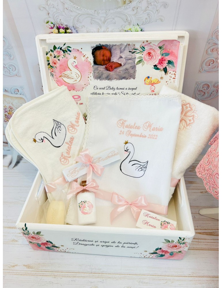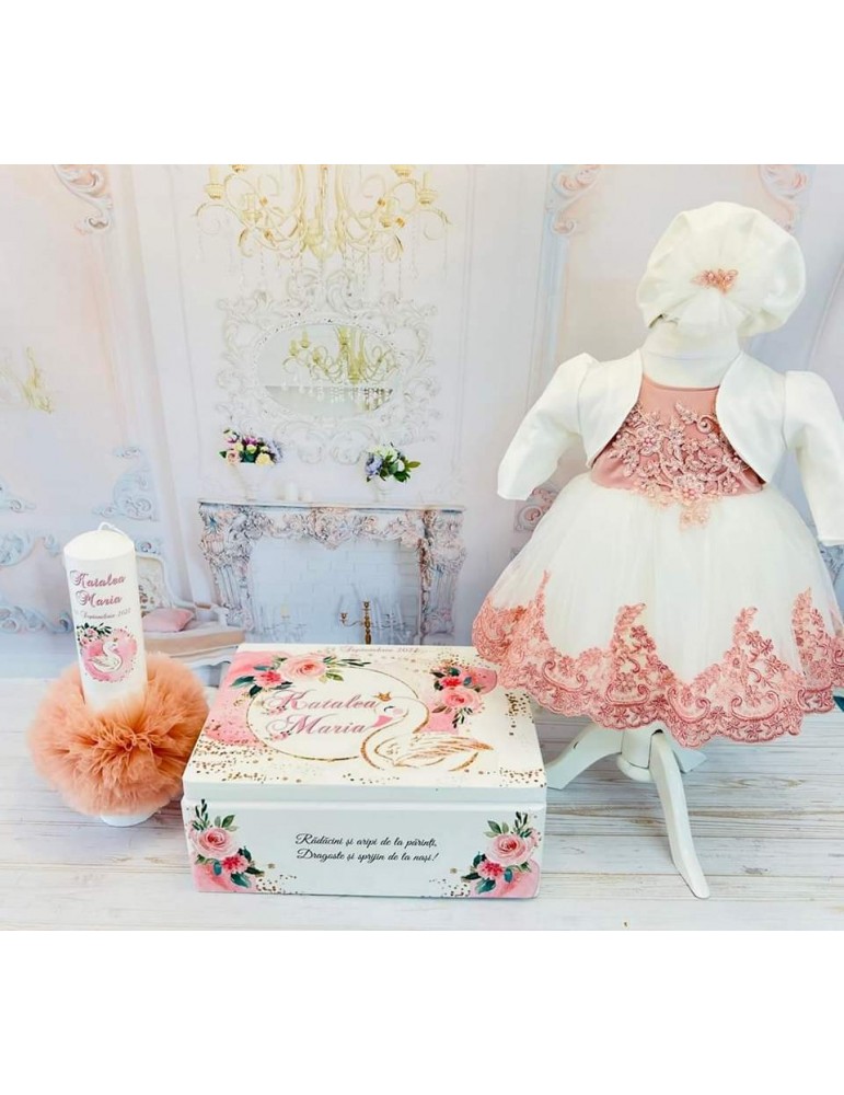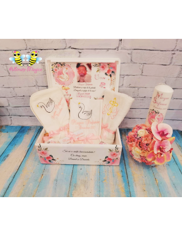 Descoperă seturile de botez personalizate pentru fetițe, create pentru a transforma ceremonia de botez într-un moment cu adevărat special. Fiecare element al setului este realizat cu atenție la detalii și personalizat pentru a reflecta tematica dorită, oferindu-ți posibilitatea să păstrezi amintiri prețioase pentru o viață întreagă.