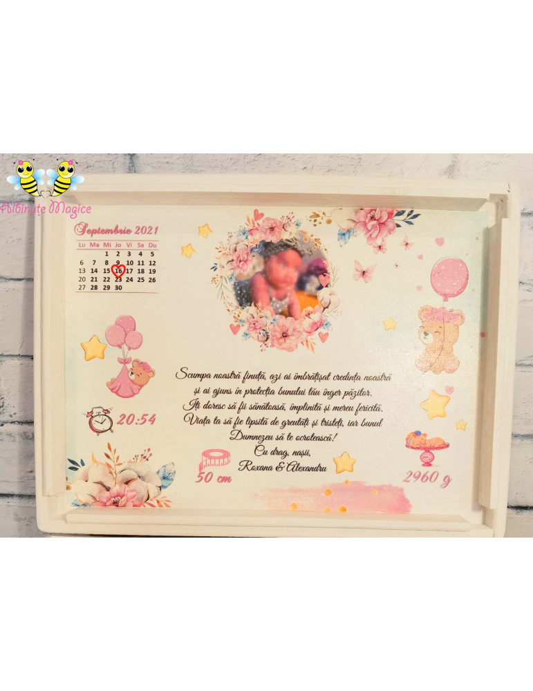 Cutia poate fi utilizată ulterior pentru păstrarea tăviței de moț, a accesoriilor speciale sau a celor mai dragi amintiri din copilărie.