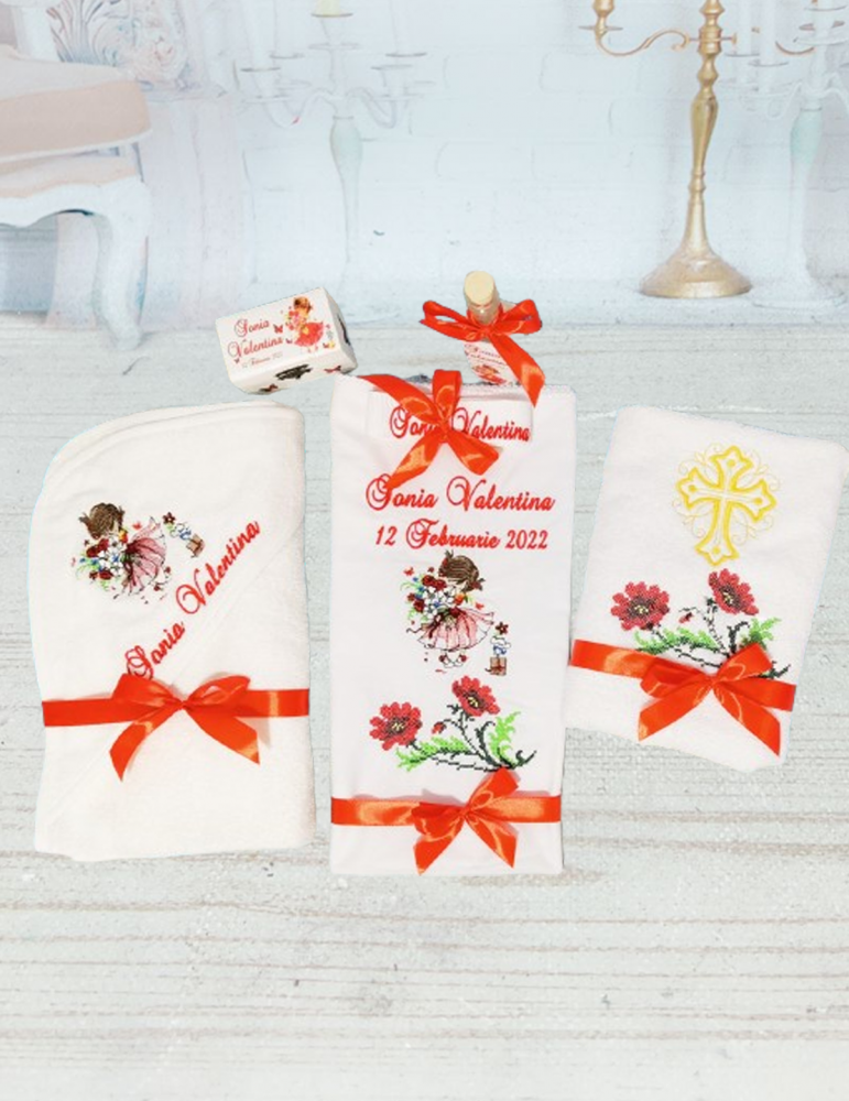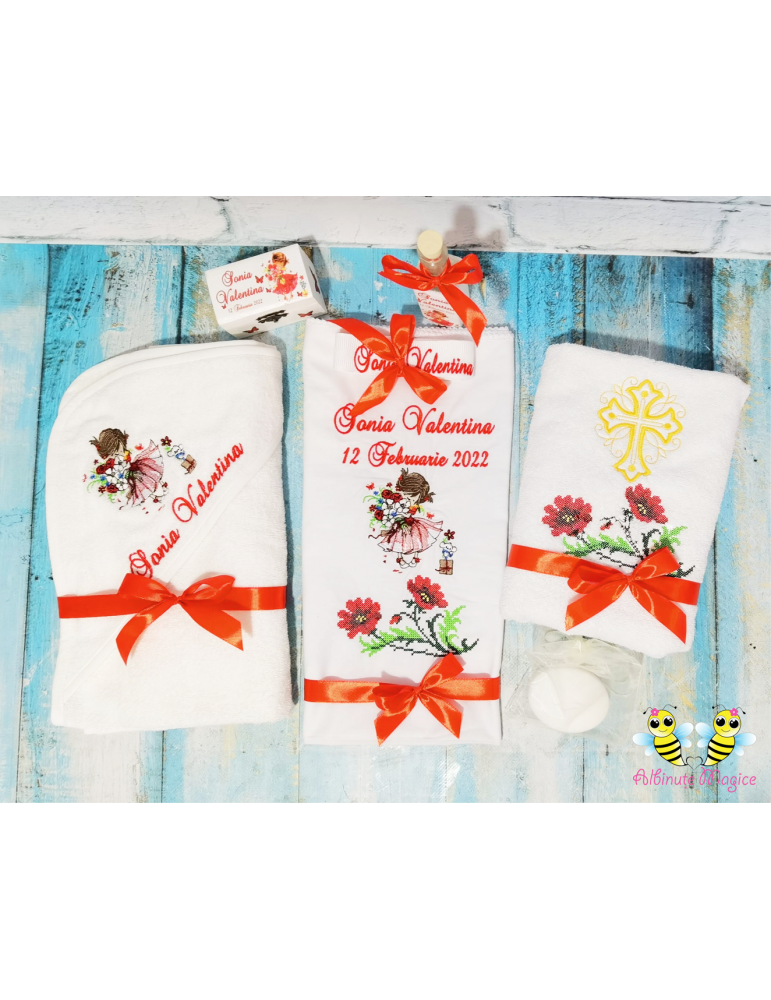 Ce contine setul de botez cu tematica "Fetita cu flori"?